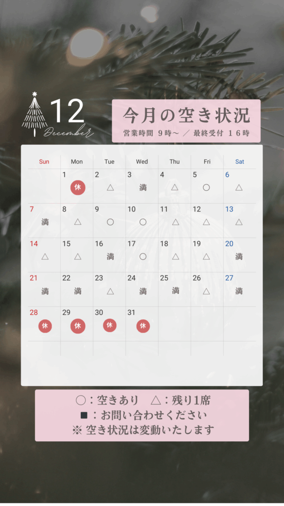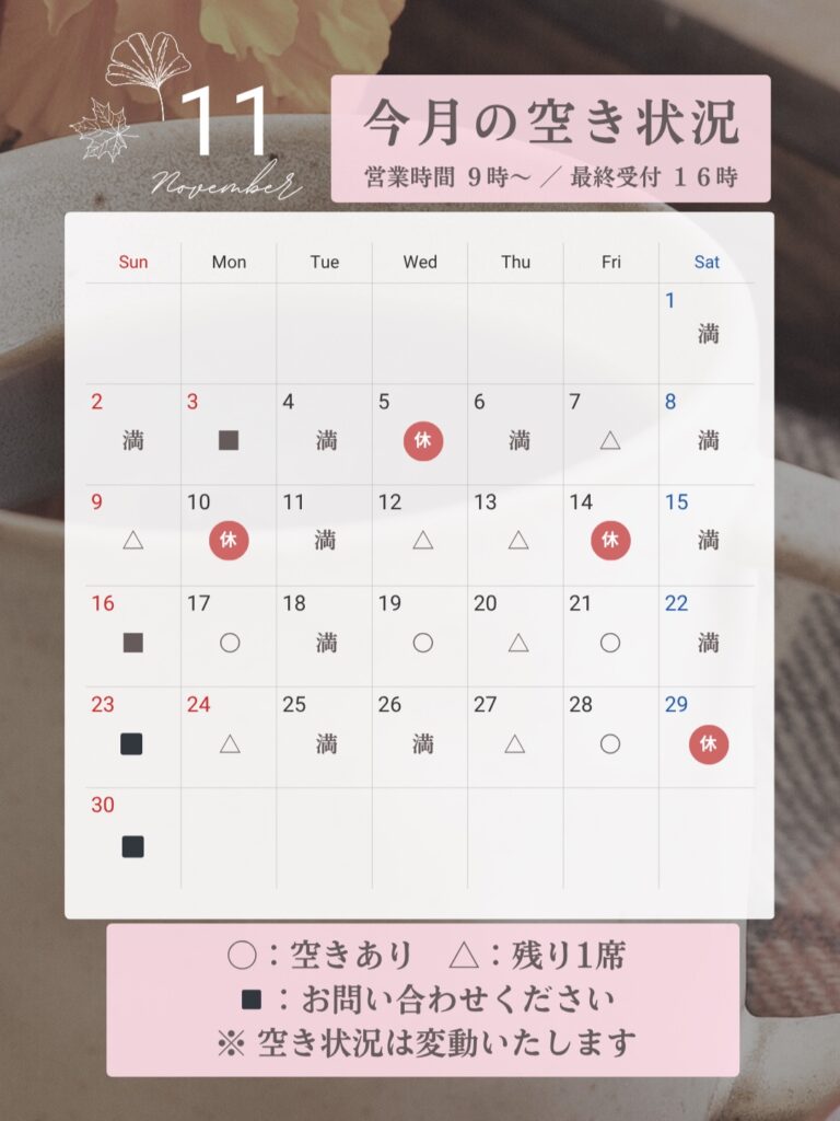 〔夕方・週末は子供がおりますのでご了承頂ける方のみ、ご予約願います〕