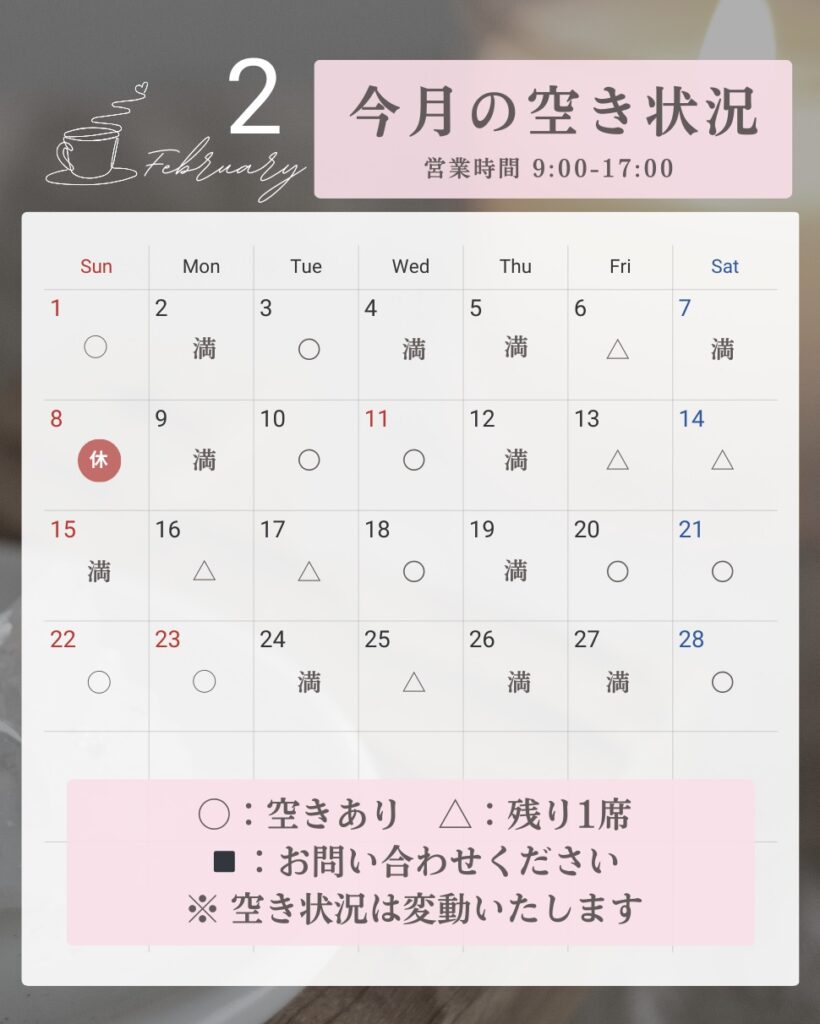 〔夕方・週末は子供がおりますのでご了承頂ける方のみ、ご予約願います〕